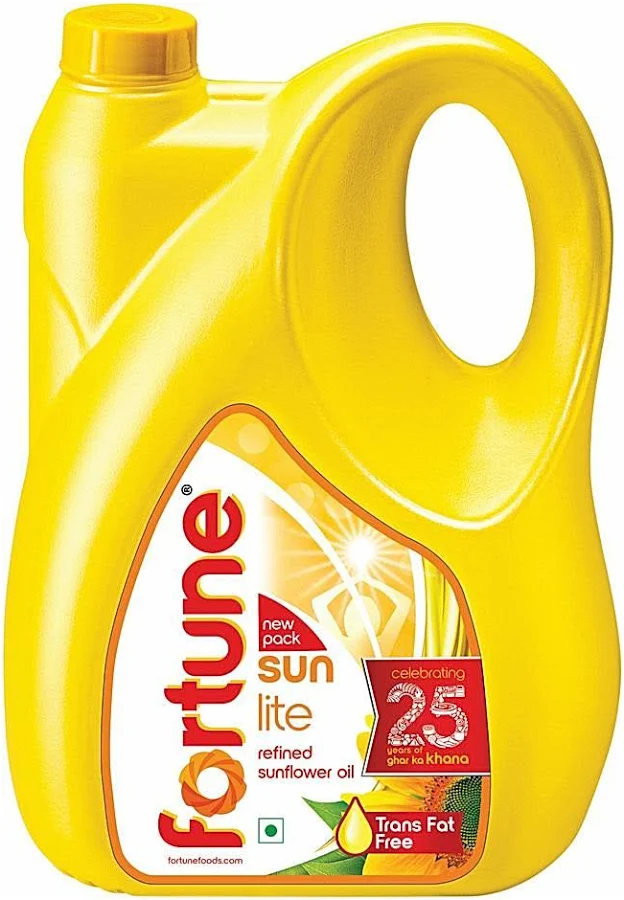 The Fortune Sunlite Refined Sunflower Oil in the 4.35 kg Jar is a popular bulk choice for family kitchens. This quantity is the standard weight equivalent for a 5-liter volume of oil. It is well-regarded for being light, easy to digest, and having a high smoke point suitable for various cooking methods.