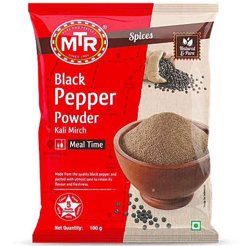The MTR Black Pepper (Kali Mirch) Powder (100g) is a premium kitchen staple known for its intense aroma and sharp, biting heat. MTR sources its pepper from high-quality plantations to ensure a consistent, bold flavor that works well in both Indian and global cuisines.